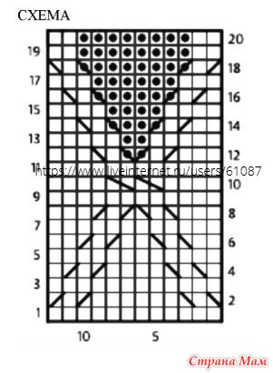 Ряд убавок (изн ряд): 1изн, 2изн вместе, по рисунку до последних 3п, SSP, 1 изн. 2п убавлено.