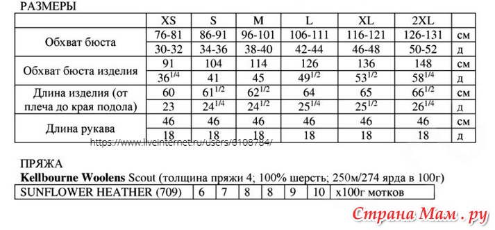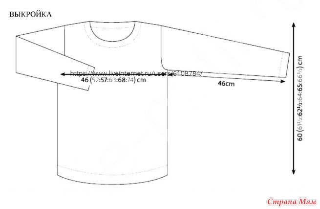 Продолжить вязать ровно по рисунку до высоты рукава 46 см.