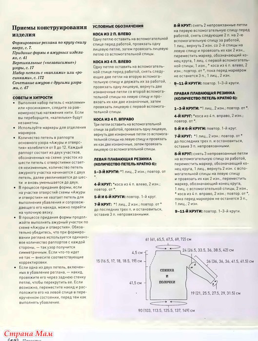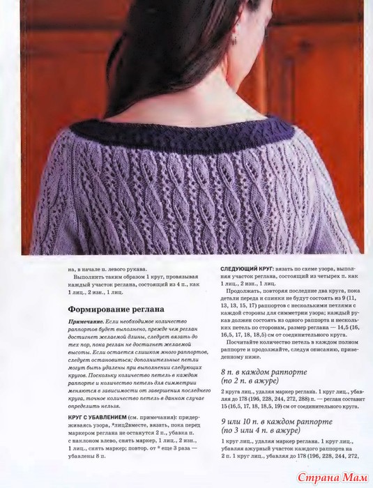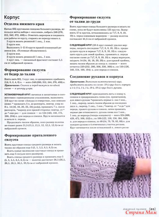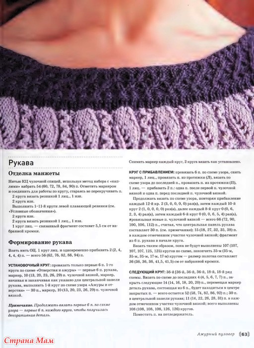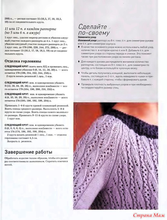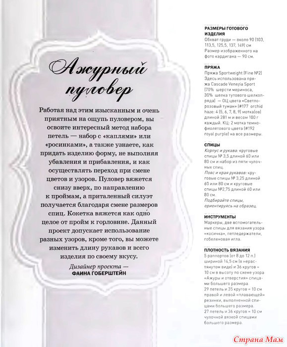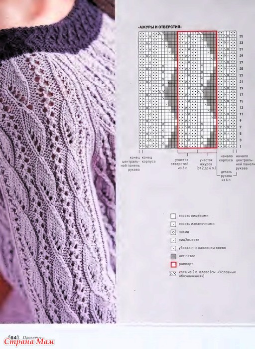 Пуловер с контрастной отделкой и ажурным узором. Спицы.