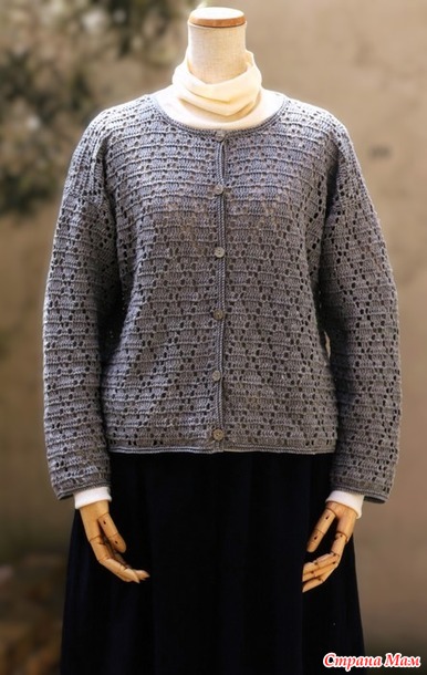 Строгий кардиган с узором ажурными ромбами. Крючок.