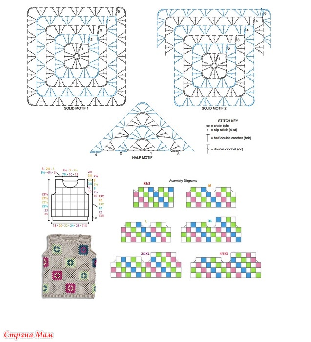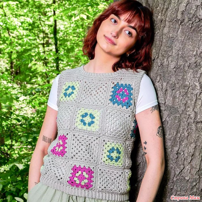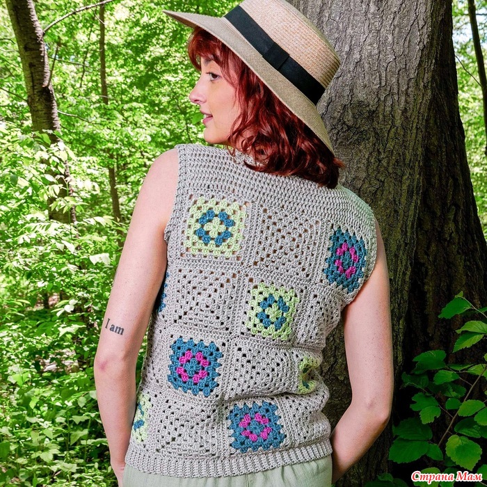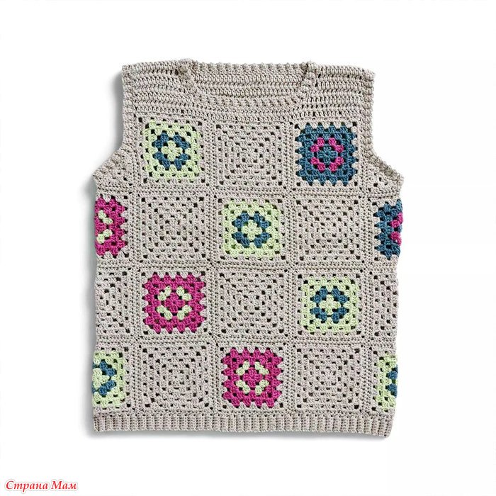 Безрукавка (топ) из разноцветных бабушкиных квадратов. Крючок.