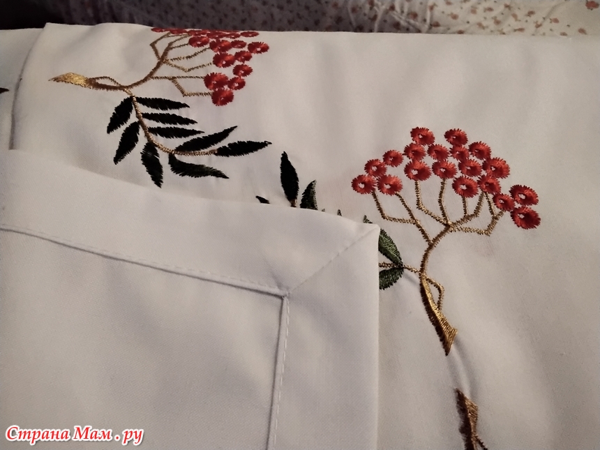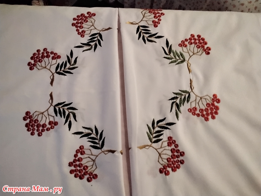 Мне подарили ткань с очень красивой вышивкой рябины .