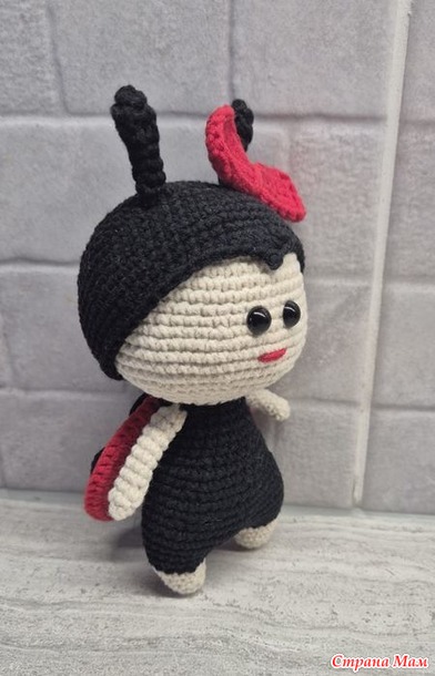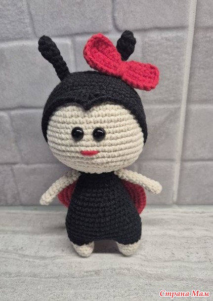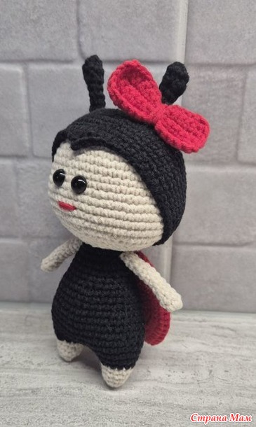 Итак, Божья коровка, пряжа Ярн Арт Джинс, крючок 1,5 , росточку 16 см с рожками.