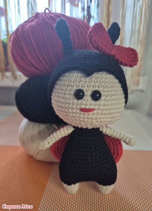 Итак, Божья коровка, пряжа Ярн Арт Джинс, крючок 1,5 , росточку 16 см с рожками.