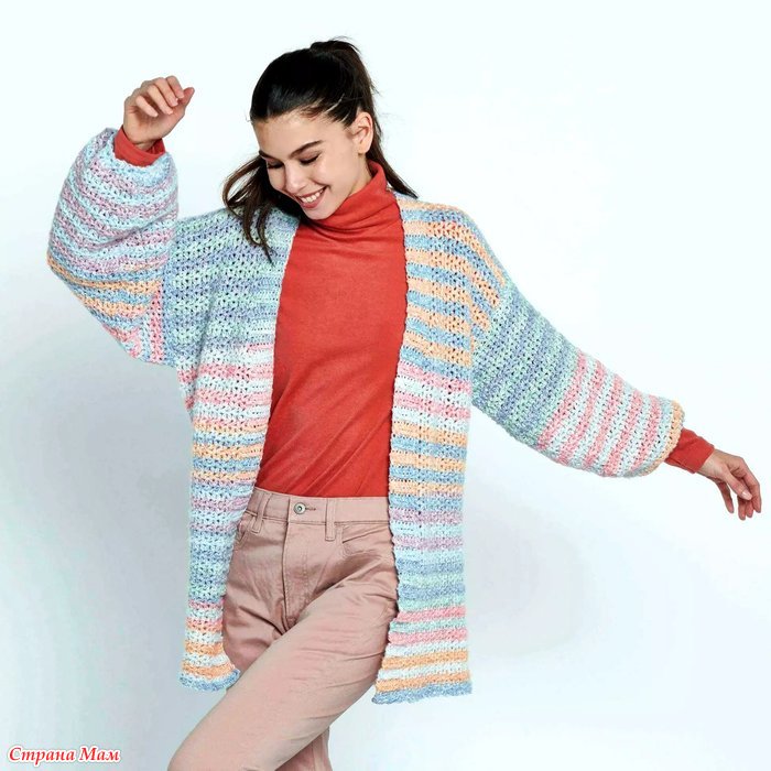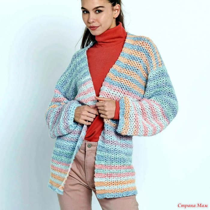 Полосатый кардиган оверсайз простым узором. Крючок.