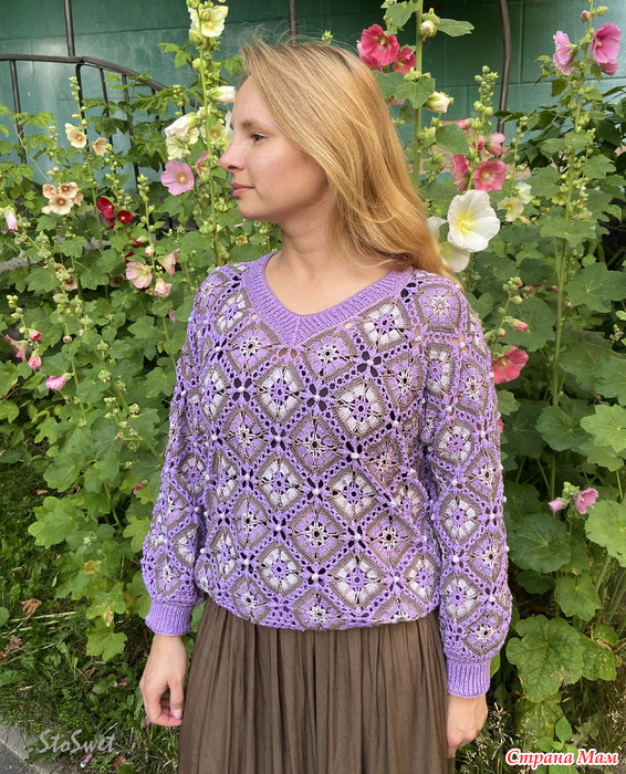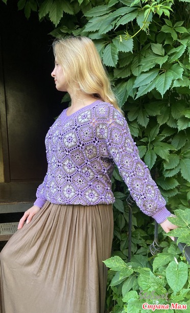 Джемпер связан из хлопковой пряжи Анна 16 (оттенки 326,1005,287) и вискозы Сапфир Люкс.Крючок 1,75. Вес 550 грамм.