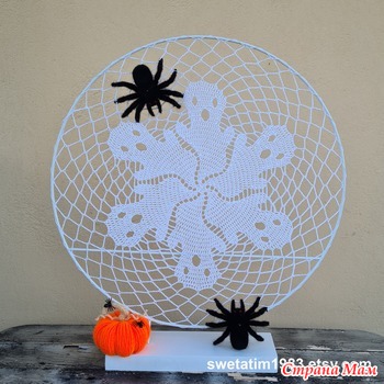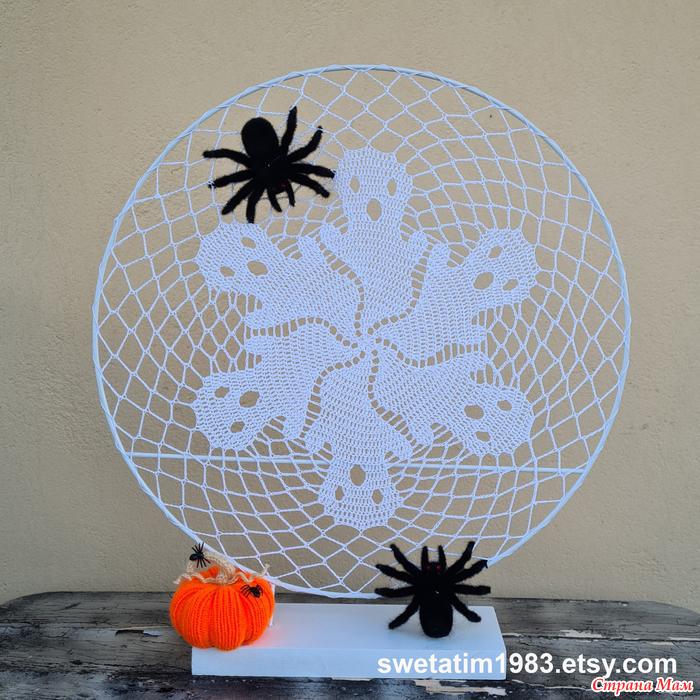 Панно с паучками и тыквой такое замечательное, ещё и приведения в центре