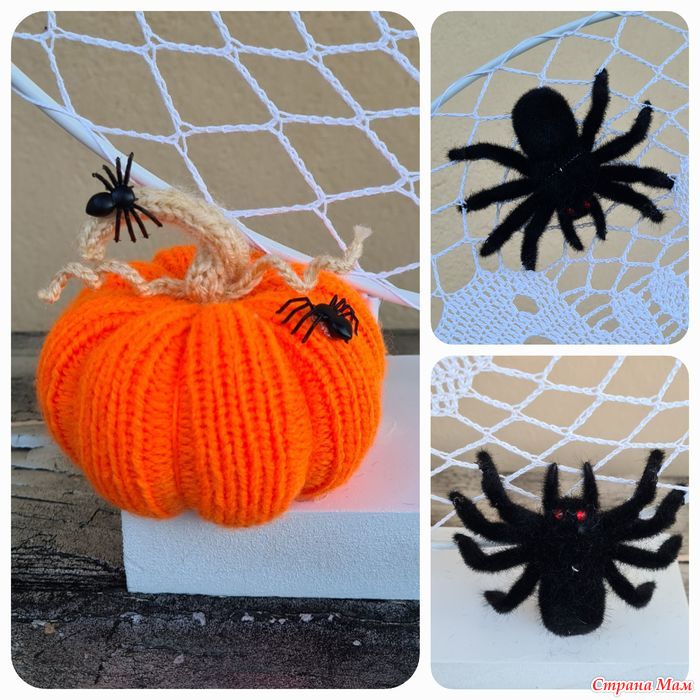 Дополняют ее сочная вязаная тыква и два больших паука, не связаны.