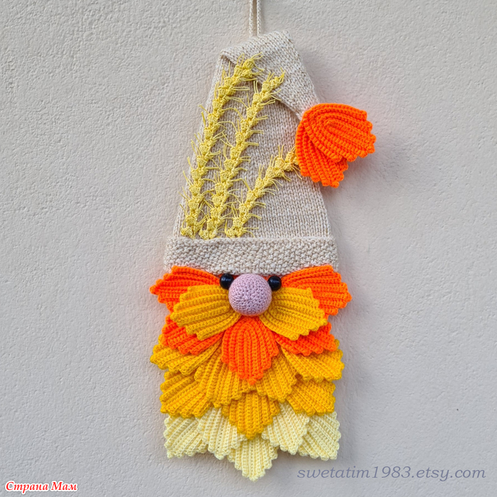 Такое украшение на дверь/стену - осеннего гномика я уже один раз вязала, два года назад.
