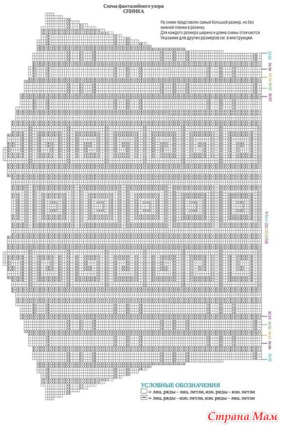 19 п. х 24 р. = 10 х 10 см, связано фантазийным узором на спицах № 4,5.