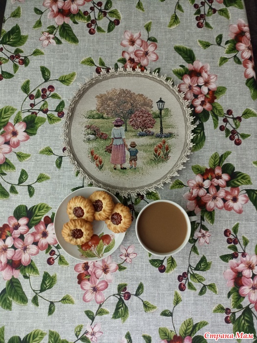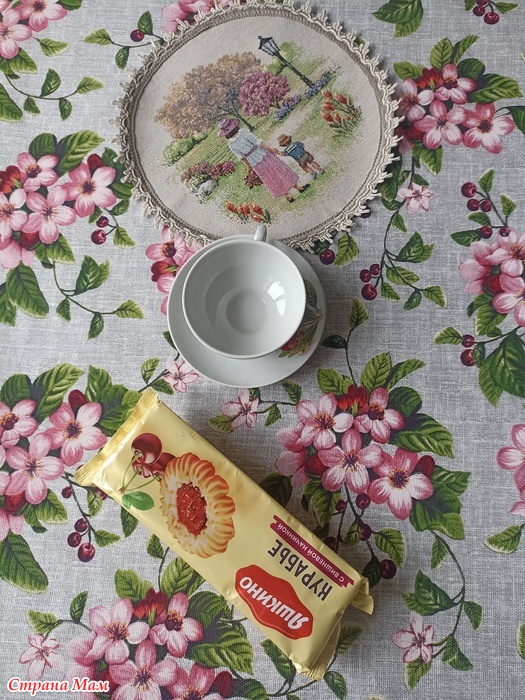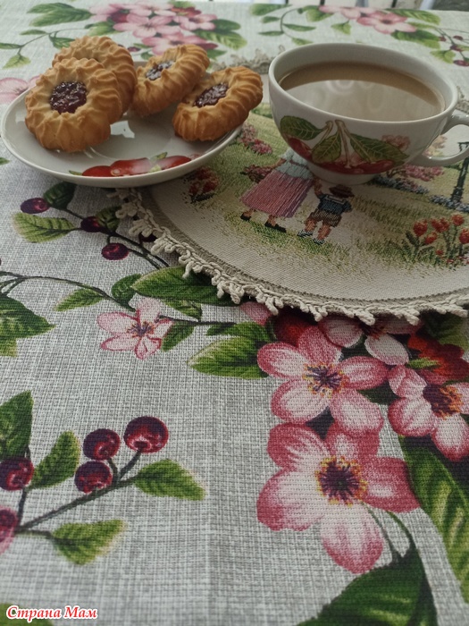 Очень люблю вишню, поэтому в августе у меня скатерть с вишенками!