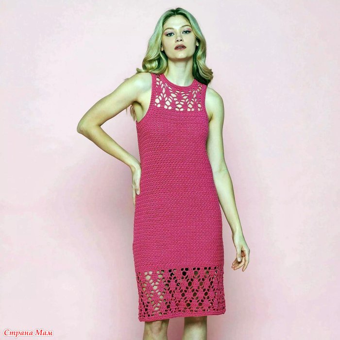 Малиновый сарафан с кружевной отделкой по низу и в районе декольте.