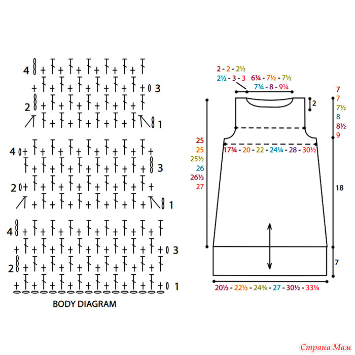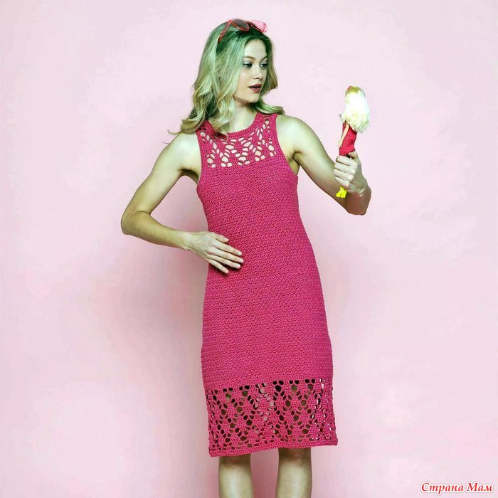 Для вязания нам потребуется 4 (5) 6 (7) мотков малиновой пряжи: 100% мерсеризованный хлопок; 250 м/100 г.