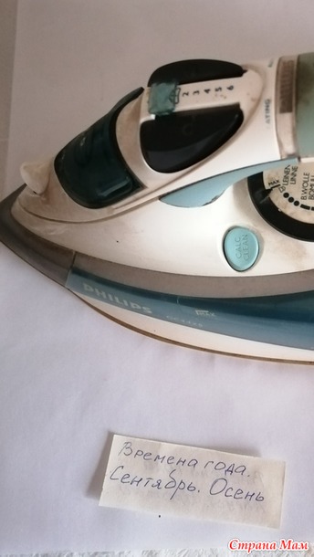 И еще меня мучает сомнение: у меня умный утюг, он сам температуру глажки определяет в зависимости от ткани. И мне очень интересно, как он справится с бутербродом из листьев и бумаги