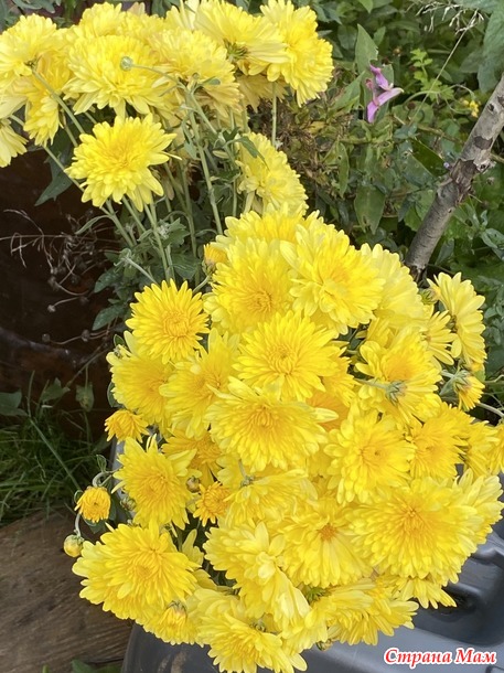 Бушует желто-сиреневым прибоем море хризантем и сентябринок.