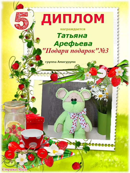 Мишенька Вишенка от Татьяны Арефьевой - https://www.spletenie.ru/users/tatjana-arefeva/stranamam/