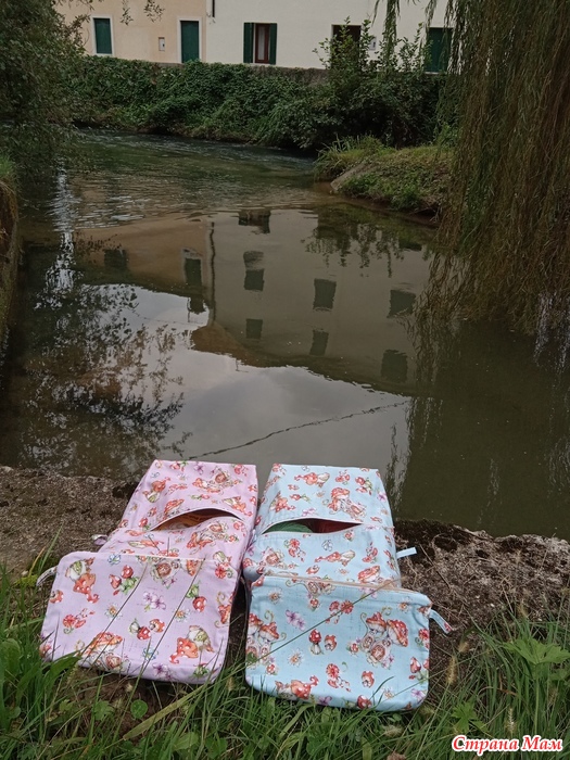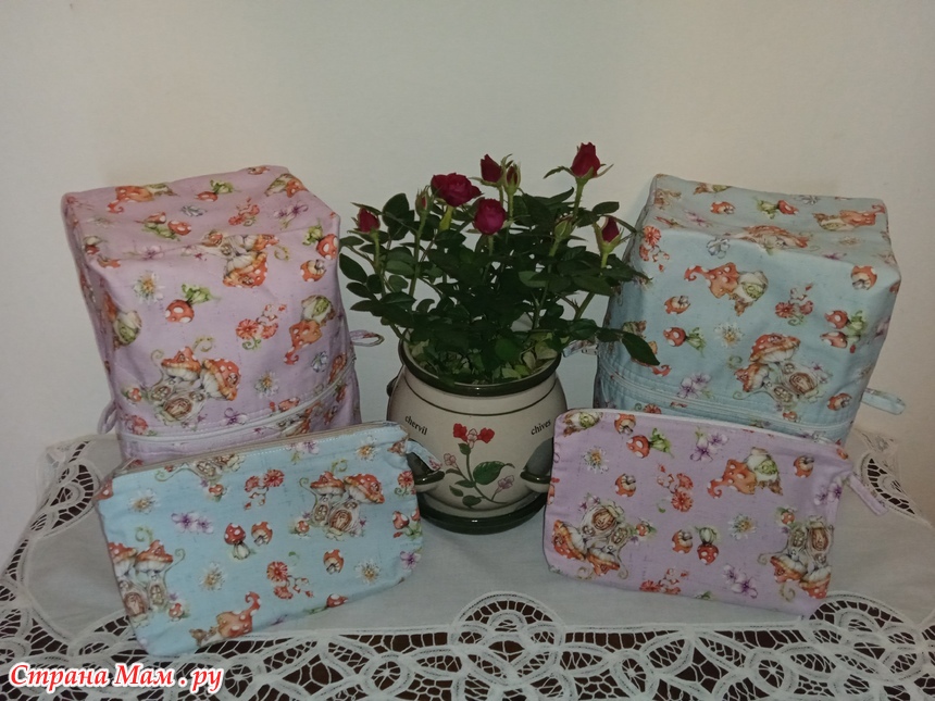 Сумочки посажены на флизелин, маленькие с подкладкой. Большие простёганы с подкладкой, швы закрытые, поперечные швы - закрыты ленточкой.