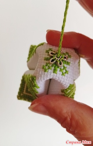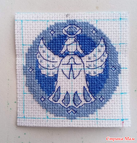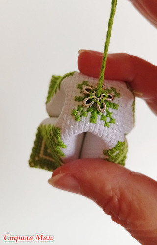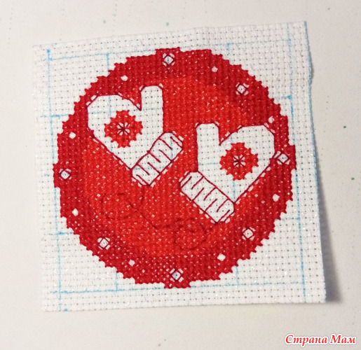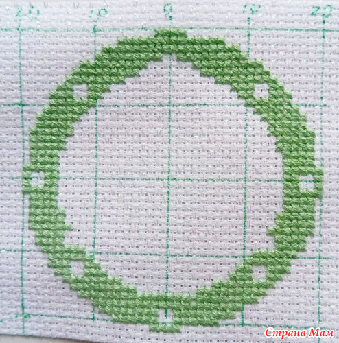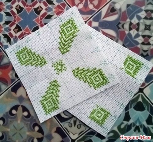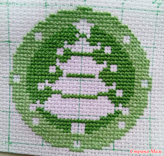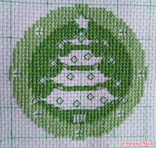 Думаю, что на такие симпатичные рисунки ставить мокрые стаканы как-то не комильфо, поэтому сделаю из них подвески на ёлку! Первой начала вышивать ёлочку на зелёном фоне. Это начало