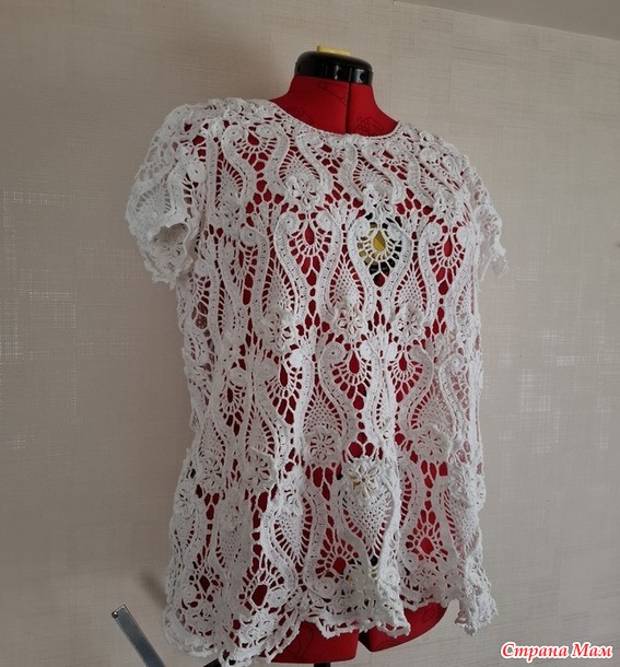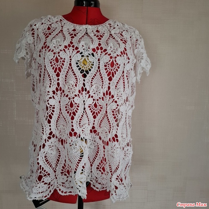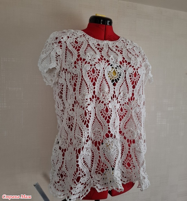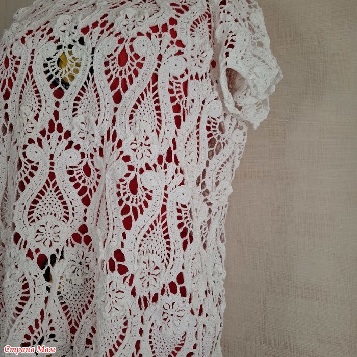 Попозже покажу на себе, а пока так. Пряжа дейзи хлопок 50г/295м, крючок 1.5, вес 417г.
