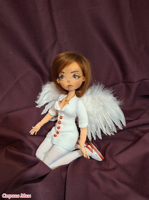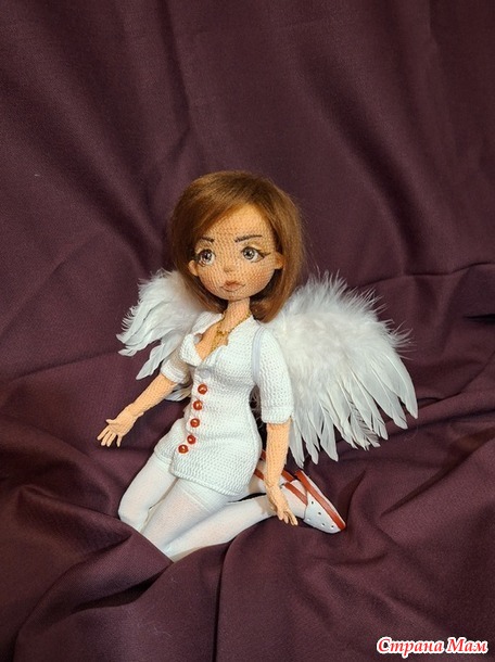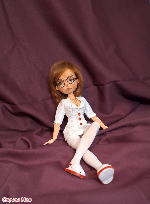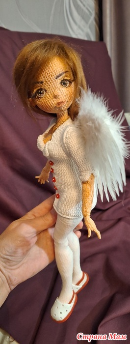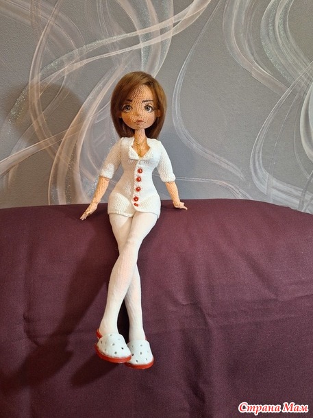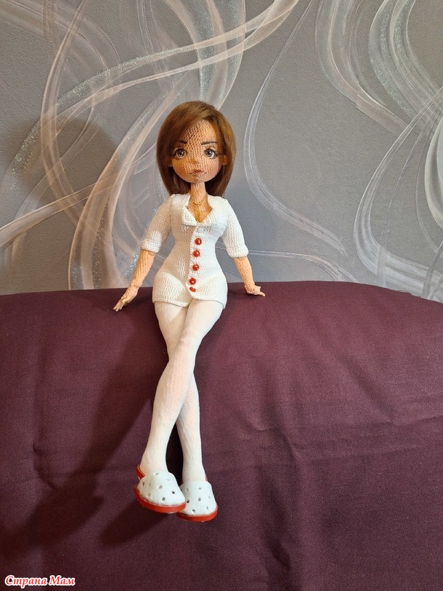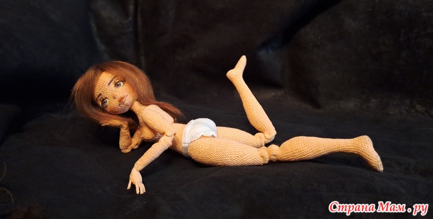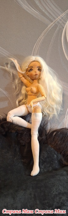 Кукла шикарная, глядя на нее даже не замечаешь, что она вязаная, настолько ровные все петельки. Словно кожа