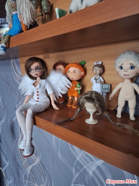 Вот и закончила я свою девочку. Результат меня в общем и целом порадовал. Не без огрехов конечно. А не отправилась в недовязы моя красотка только благодаря нашей Ирине, которая поддерживала, помогала, подсказывала, не давала окончательно пасть духом. У нас с Ириной был эдакий совместник на двоих и это супер! Мне было сложно. Очень сложно. Вязала и перевязывала целыми деталями. То руки почему то обе левые хотя от схемы не отступала ни на петлю, то ноги почему то стали вялыми и рыхлыми, то рассопливились в бедренном креплении....и т.д, и т.д. Капризничала куклена в полный рост. Кстати про рост. Росточком девочка получилась 32 см. Вязала из Пехорки ажурной крючком 0,9. На самом деле он несколько меньше аналогов другой фирмы. Даже меньше Пони 0,75. Не буду утомлять вас подробностями, а сразу перейду к фотосессии.