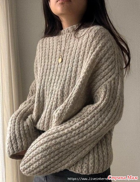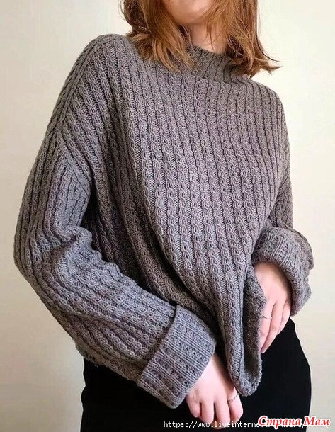 Свитер вяжется сверху вниз, так что вы можете примерить его и регулировать длину по ходу вязания.