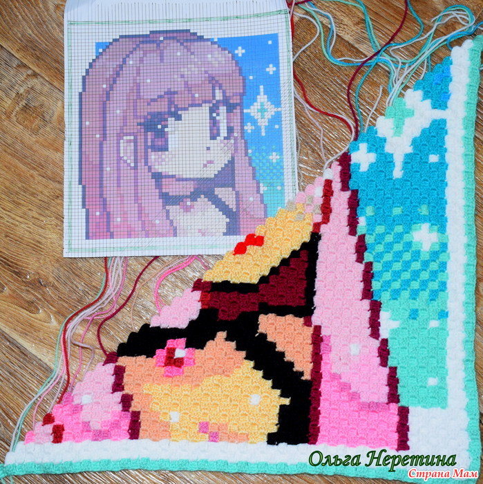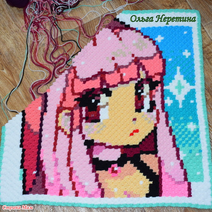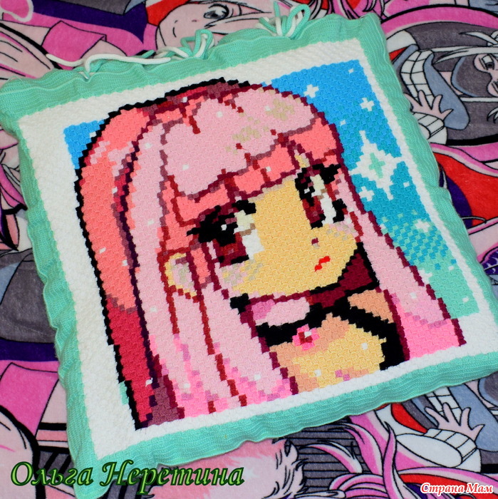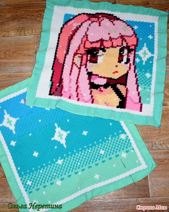 Всем привет! Я уже показывала плед для дочки в технике с2с и наволочку с тачками для сына, а теперь спешу показать ещё одну готовую работу – наволочку для дочки!