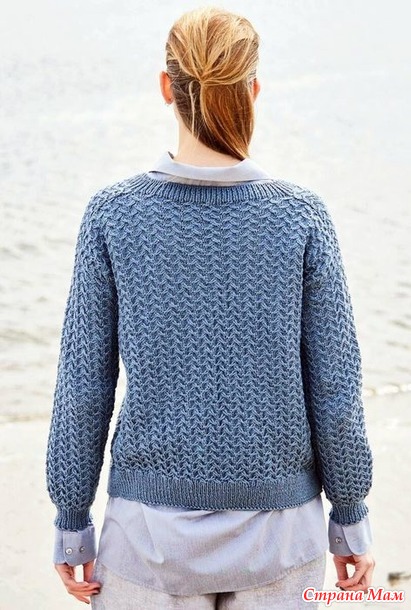 Для вязания нам потребуется 700 (750) 800 г пастельно-голубой (цвет № 629036) пряжи FISCHER-WOLLE "Lucca": 70% шерсть, 30% лиоцелл; 110 м/50 г.