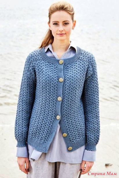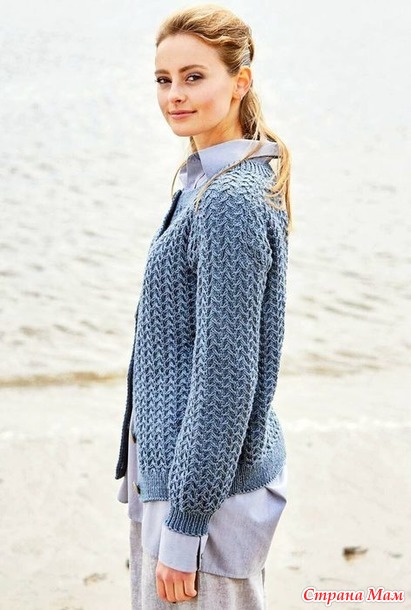 Кардиган на пуговицах с узором «колосок». Спицы.