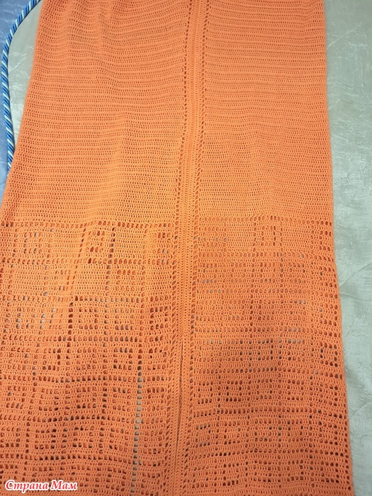 Вдоль боковых швов связана планка,состоящая из столбиков с накидом и одного ряда филейной сетки. Это метод Ирины Хорн. Я подсмотрела это в её моделях и решила сделать так же. Тем более,что по боковым швам на платье есть небольшие разрезы,которые уже не надо было обвязывать.