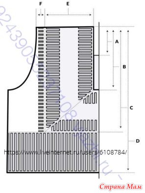 Затем выполняется текстурный узор. Прямоугольная форма панели достигается за счет прибавок около 4-х линий (они как раз и образуют углы прямоугольника). За счет выполнения центральной панели достигается нужная (или желаемая) ширина плеч.