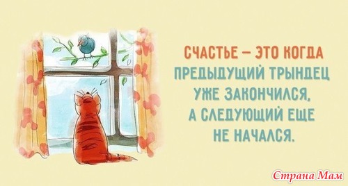 А так счастье, что у меня есть дочь, что она благополучная во всех смыслах. Счастье, что есть дом, необходимый материальный минимум, есть мои коты, увлечения и хобби. Счастье, что я живу. Счастье, что в моей жизни хорошего больше, чем плохого.