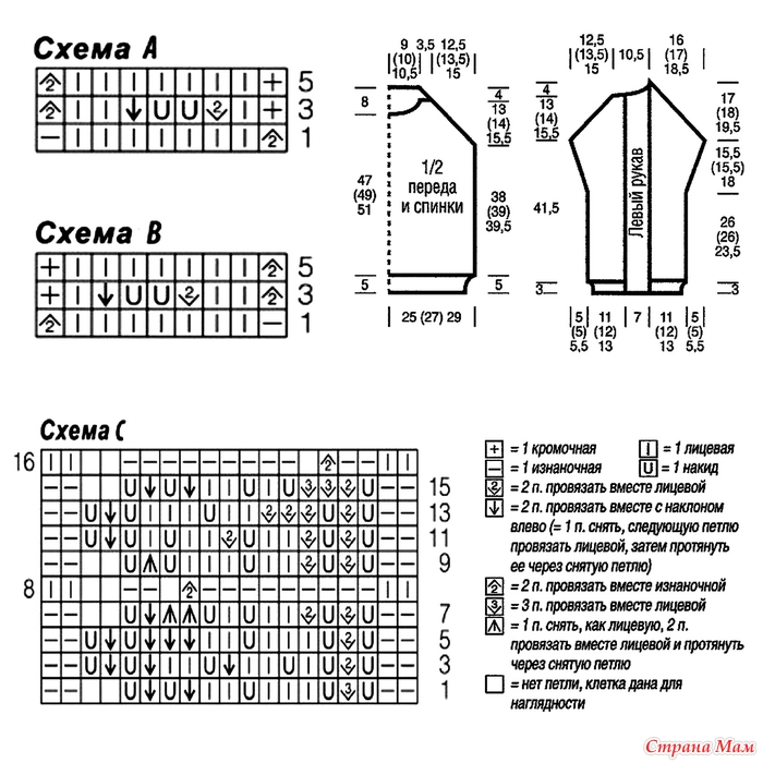 Правый рукав. Вязать как левый рукав, но в зеркальном отображении.