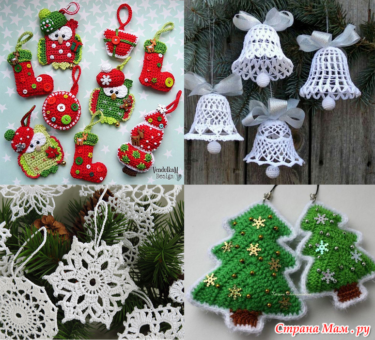 Например украшение на ёлку: снежинки, колокольчики, ёлочки, шарики ...