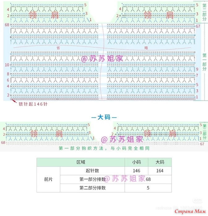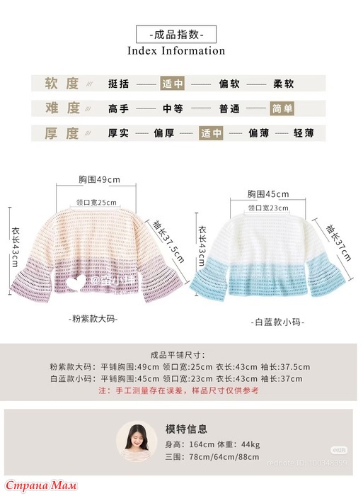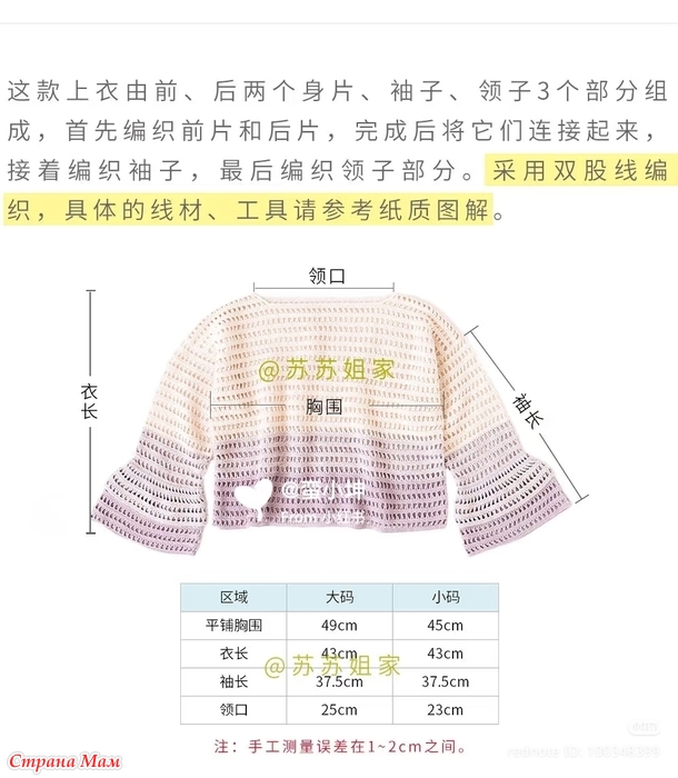 Этот пуловер состоит из трёх частей: переда и спинки, рукавов и воротника. Сначала вяжите перед и спинку, затем соедините их. Продолжайте вязать рукава, а затем воротник. Используйте двухниточную пряжу. Информация о составе пряжи и инструментах представлена ​​на схеме.