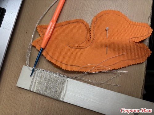 Вот так крючком на линейку набирала нить для гривы. Когда разрезала, было ровно, но потом при вшивании пошло всё вкривь и вкось