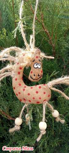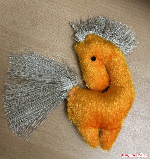 Но вот что к концу дня вышло. Не идеально, но вполне можно повесить на ёлочку. Если буду повторять, то для гривы не буду брать лён.