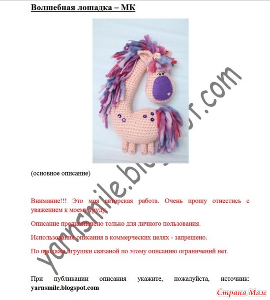 Для любительниц вязания крючком МК Волшебная лошадка