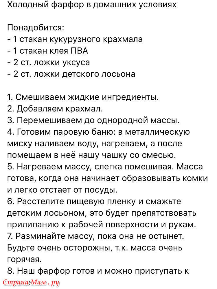 Рецепт массы холодного фарфора: