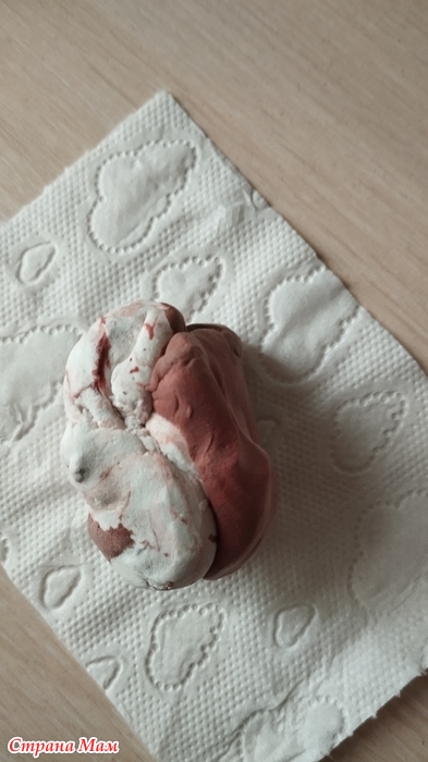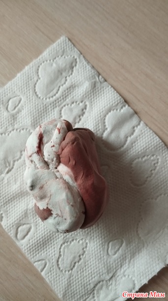 Массу для лепки сделала сама. Сначала из 3 ст.л. клея ПВА и белой туал.бумаги сделала вязкую бумажную массу, затем добавила в неё 3 ст.л. крахмала (ложки без горки).