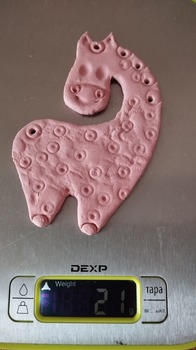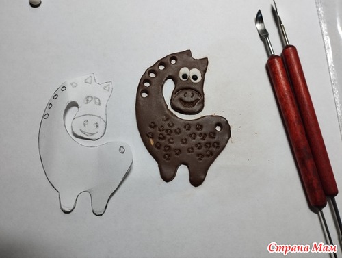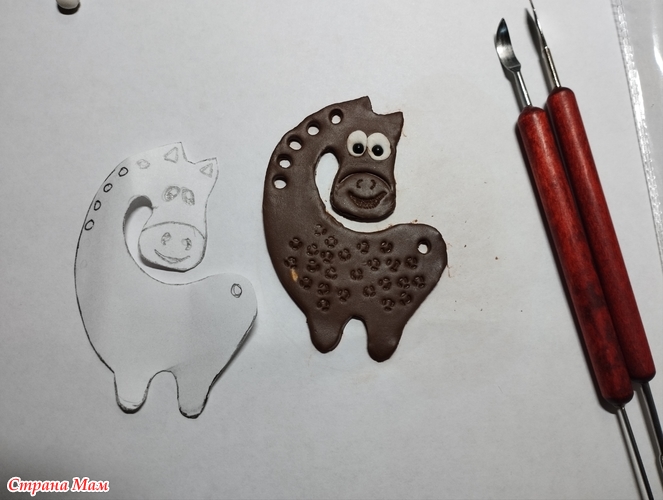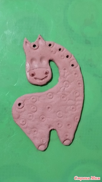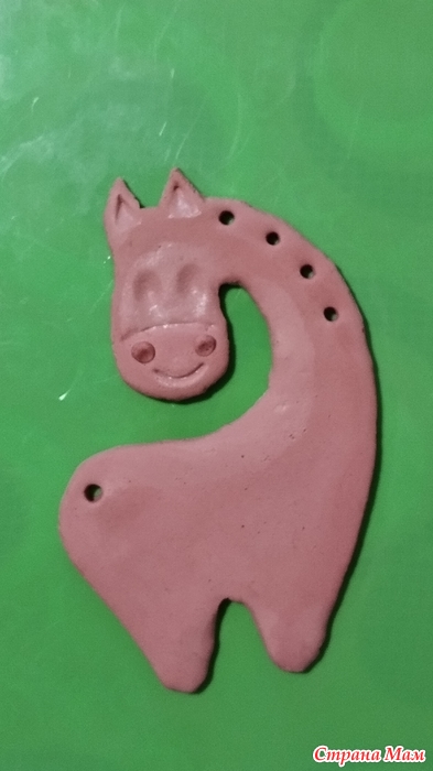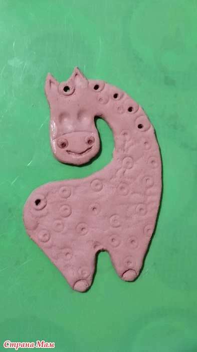 После первого раза работы с запекайкой- очень интересно, но нужно делать деталь-тело чуть толще, а дырочки под гриву чуть меньше.