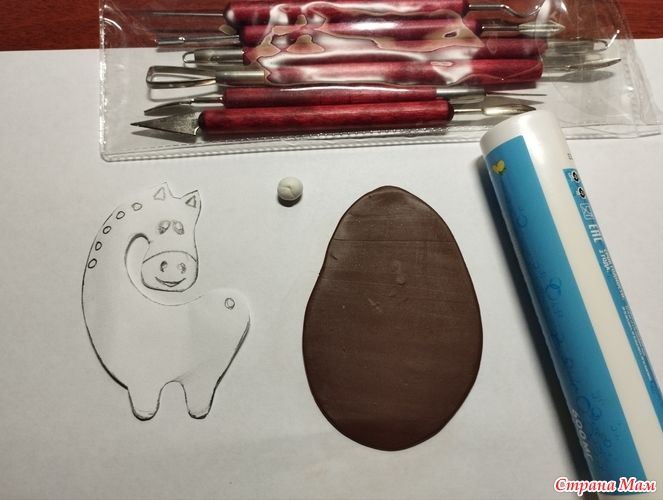 Раскатала массу в пласт толщиной 5 мм, вырезала по контуру шаблона лошадку.