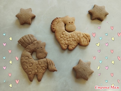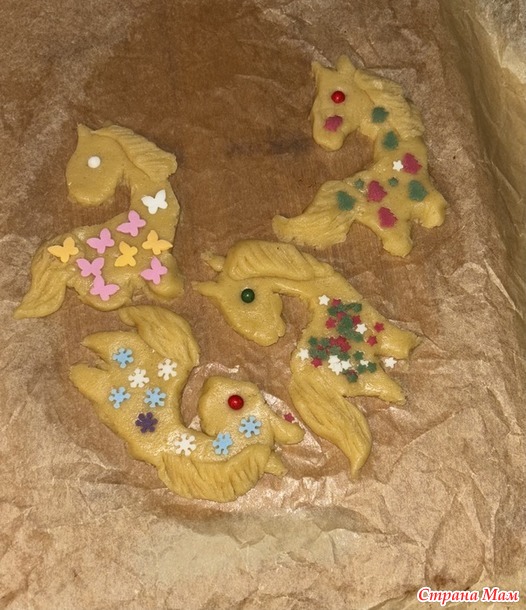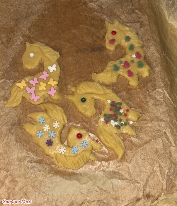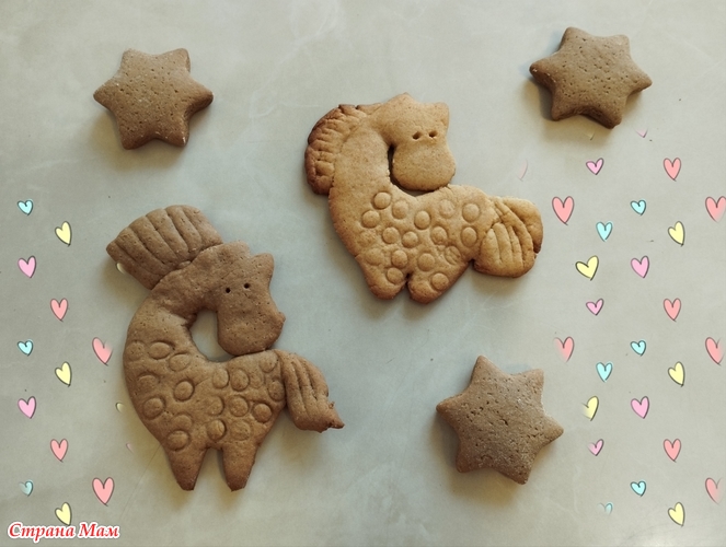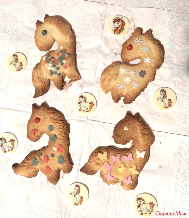 Было 2 партии печенек- песочное медовое и сметанно-шоколадное. В обеих партиях по лошадке.
