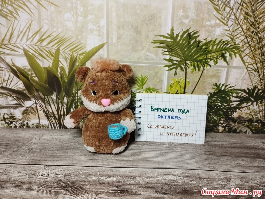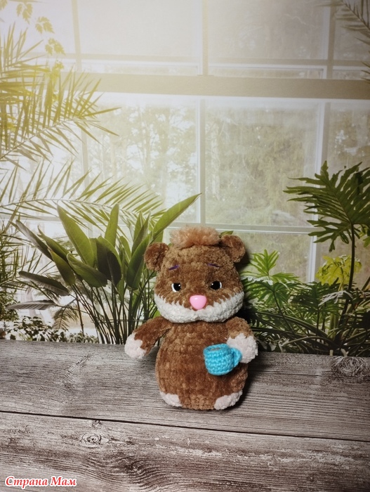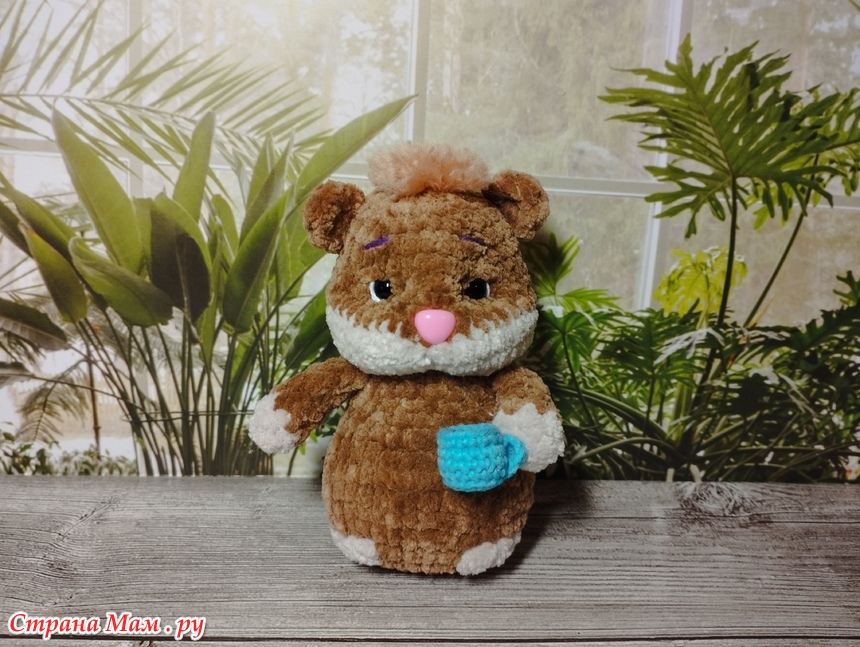 Хомячок связан из Лавита Велюр, крючок 3,5 по МК Ольги Вологжаниной из вк. Кружечка с кофе связана из Джинс, крючок 1,75 без описания. Рост игрушки 12см.
