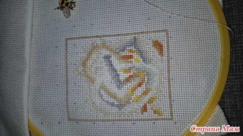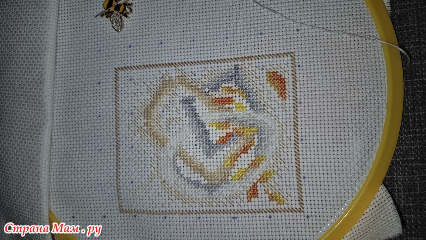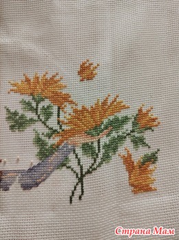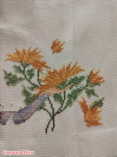3) "Вышивальная осень". Первый мотив почти закончен. Не хватает одного цвета ниток, пришлось дозаказать.