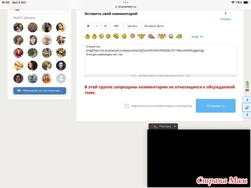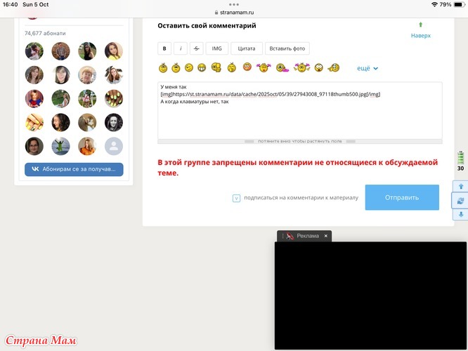 Уважаемые модераторы, может быть можно как-то донести до разработчиков сайта вот это фото. Ну невозможно что-то смотреть или читать в СМ с планшета. Последнее время когда вхожу сюда, кажется, что я не смотрю сообщения, а подсматриваю в замочную щель. А фото вообще приходится частями смотреть. Мало того, начинаю двигать страницу вверх, эта чернота тоже ползёт вверх. В результате можно увидеть только 1/3 страницы. Когда же это закончится? Когда мы снова сможем нормально видеть всю страницу?