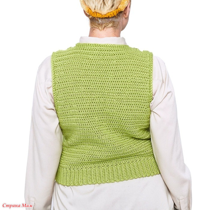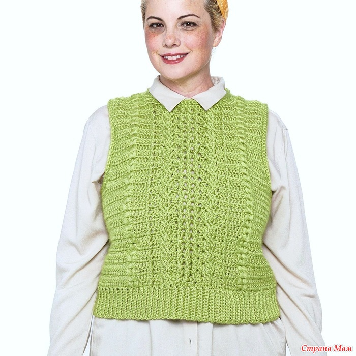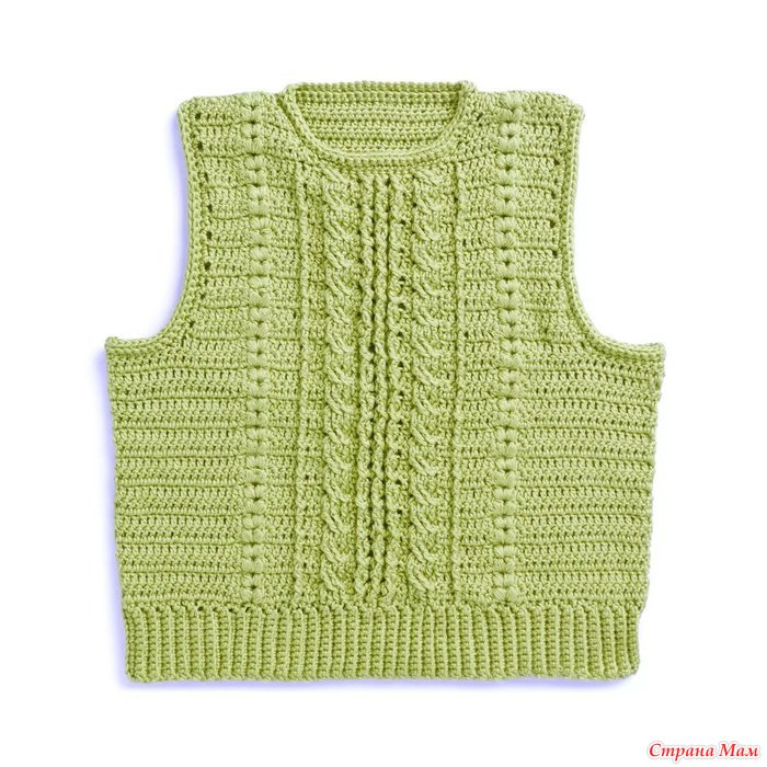 Укороченная салатовая безрукавка с рельефными узорами. Крючок.