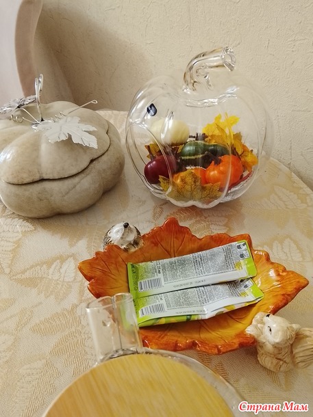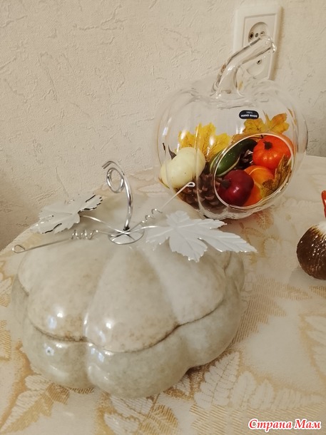 Тыкв у на две одна украшение, другая функциональная конфетница.