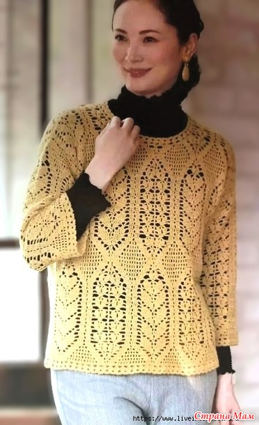Ажурный джемпер с вертикальными вставками из раститтельного узора. Крючок
