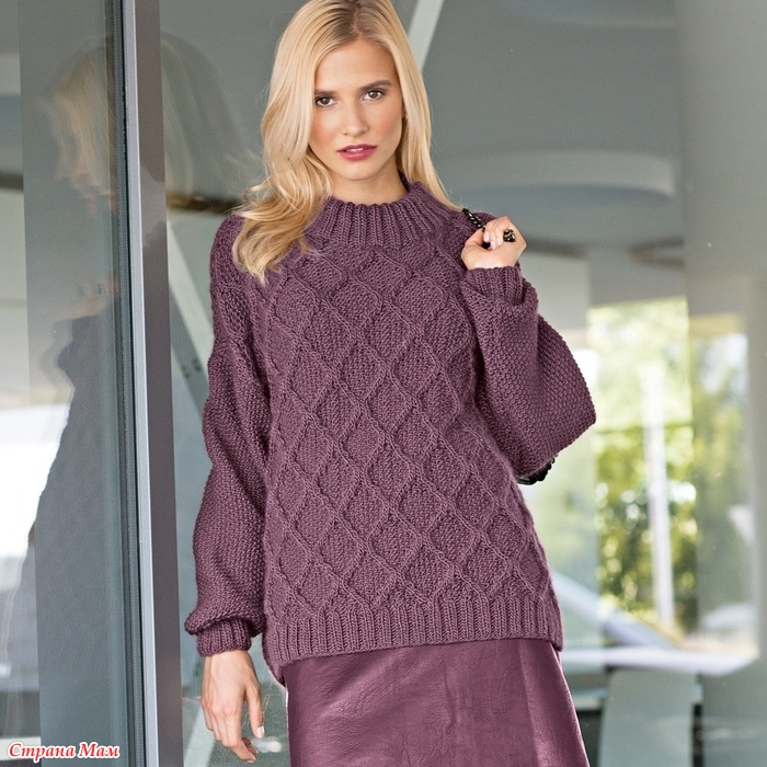 Пуловер с рельефными ромбами. Спицы.